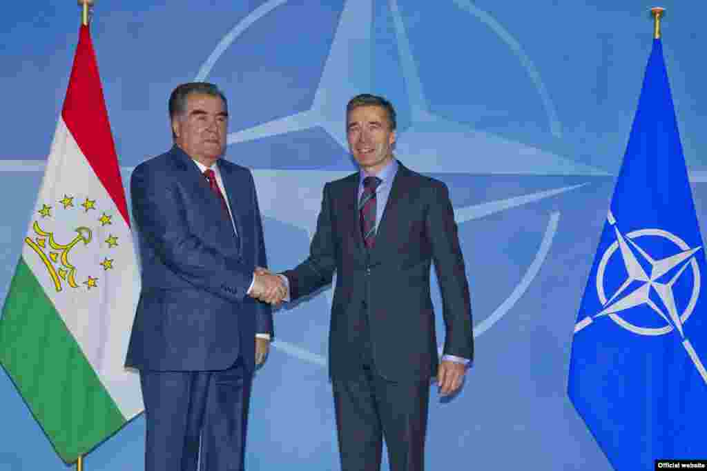 Эмомали Рахмон, президент Таджикистана в рамках своего визита в Брюссель провел встречи с верховным представителем ЕС по иностранным делам и политике безопасности Кэтрин Эштон, генсеком НАТО Андерсом Фогом Расмуссеном, председателем Европарламента Мартином Шульцом и главой Совета Европы Германом Ван Ромпуем.