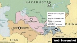 Сравнение цен на бензин в пяти республиках Центральной Азии показывает, что самый дорогое топливо в Таджикистане.