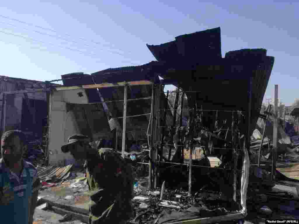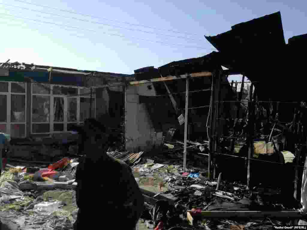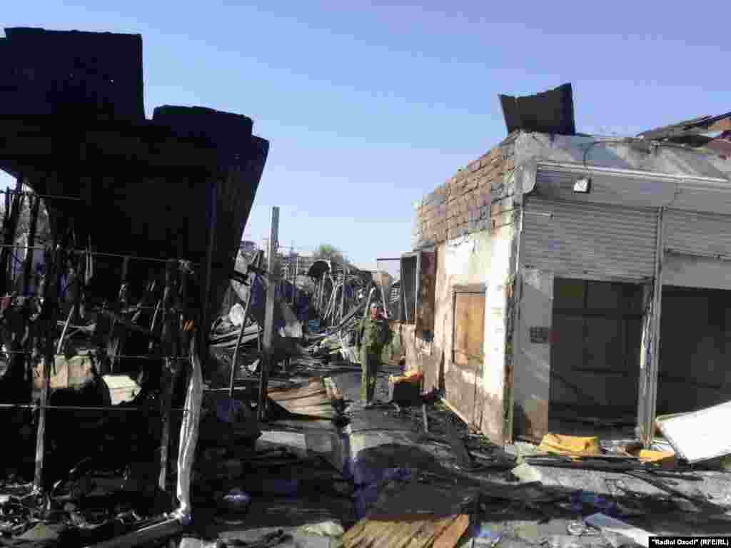 В результате пожара на рынке "Корвон" были повреждены 25 магазинов и 260 торговых точек, сообщает МВД Таджикистана. Сильный пожар на самом крупном вещевом рынке столицы произошел вечером 2 июля.