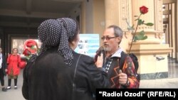Сурайё и ее муж – известный журналист Джума Мирзо раздали прохожим красные розы — символ любви и романтики. «Я хочу, чтобы сегодня хотя бы 101 мужчин приходил домой с цветком и говорил нежные слова своей половинке». И, конечно, хотелось бы, чтобы мужчины дарили женщинам цветы не только в Международный день 8 Марта, но и просто так», - говорит Сурайё.