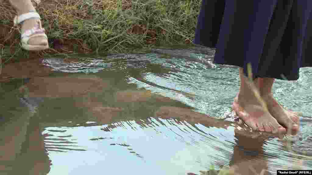 По дороге в школу и обратно им необходимо пересекать речку по зыбкому висячему мостику. А в дни, когда уровень воды не так высок, дети предпочитают переходить речку пешком.