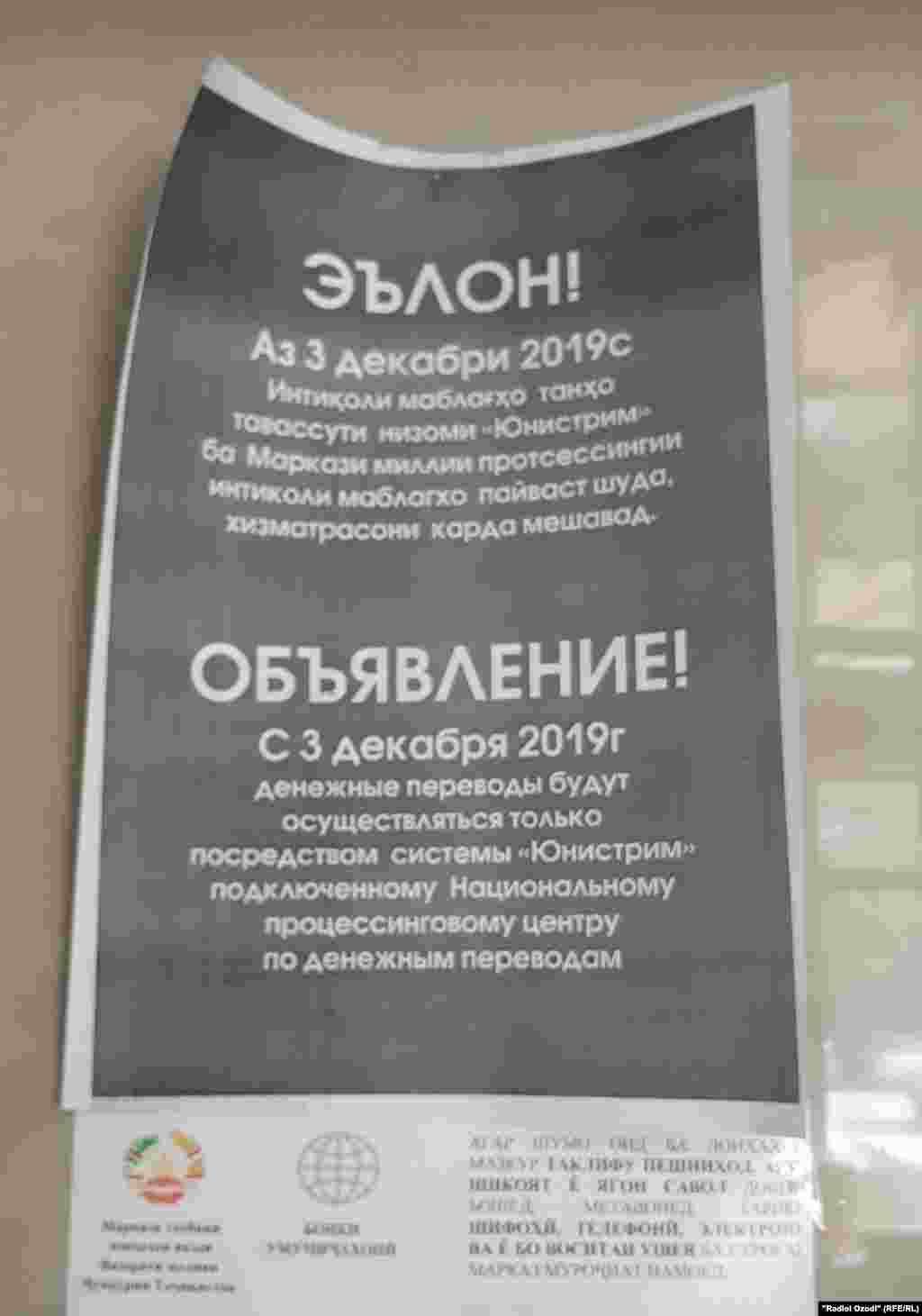 В Таджикистане граждане не могут получить денежные переводы от родных