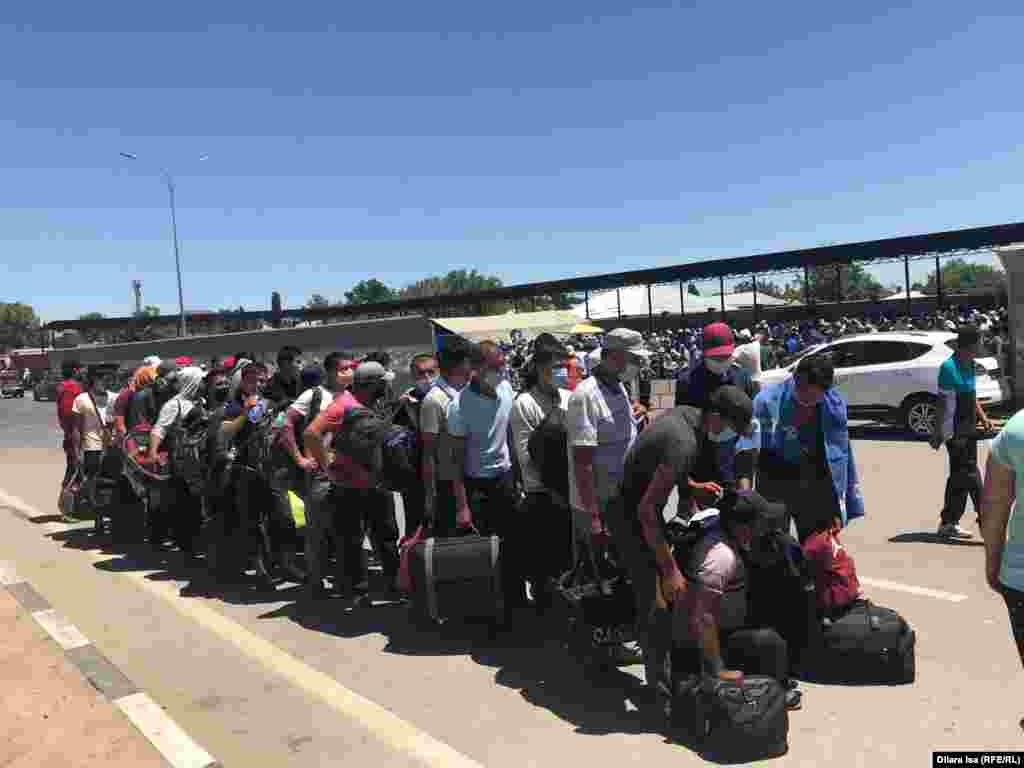 Cотни граждан Таджикистана, застрявшие на пункте пропуска "Жибек-Жолы" на казахстанско-узбекской границе, ждут возвращения домой. Они живут под открытым небом в нечеловеческих условиях: спать таджикистанцам приходиться прямо на земле, еду вынуждены приготовить на костре. Ранее таджикские власти при содействии IOM, а также финансовой поддержки США и Норвегии дважды организовали вывоз своих граждан из этого пограничного пункта пропуска. 3 июля МИД Таджикистана сообщил, что в ближайшее время еще 650 граждан страны будут доставлены на родину. Фото корреспондента Казахской службы Радио Свобода.