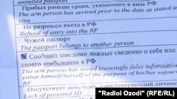 В беседе с Радио Озоди он отметил, что пограничник аэропорта Внуково, увидев турецкий штамп в его паспорте, начал расспрашивать его об этой поездке.